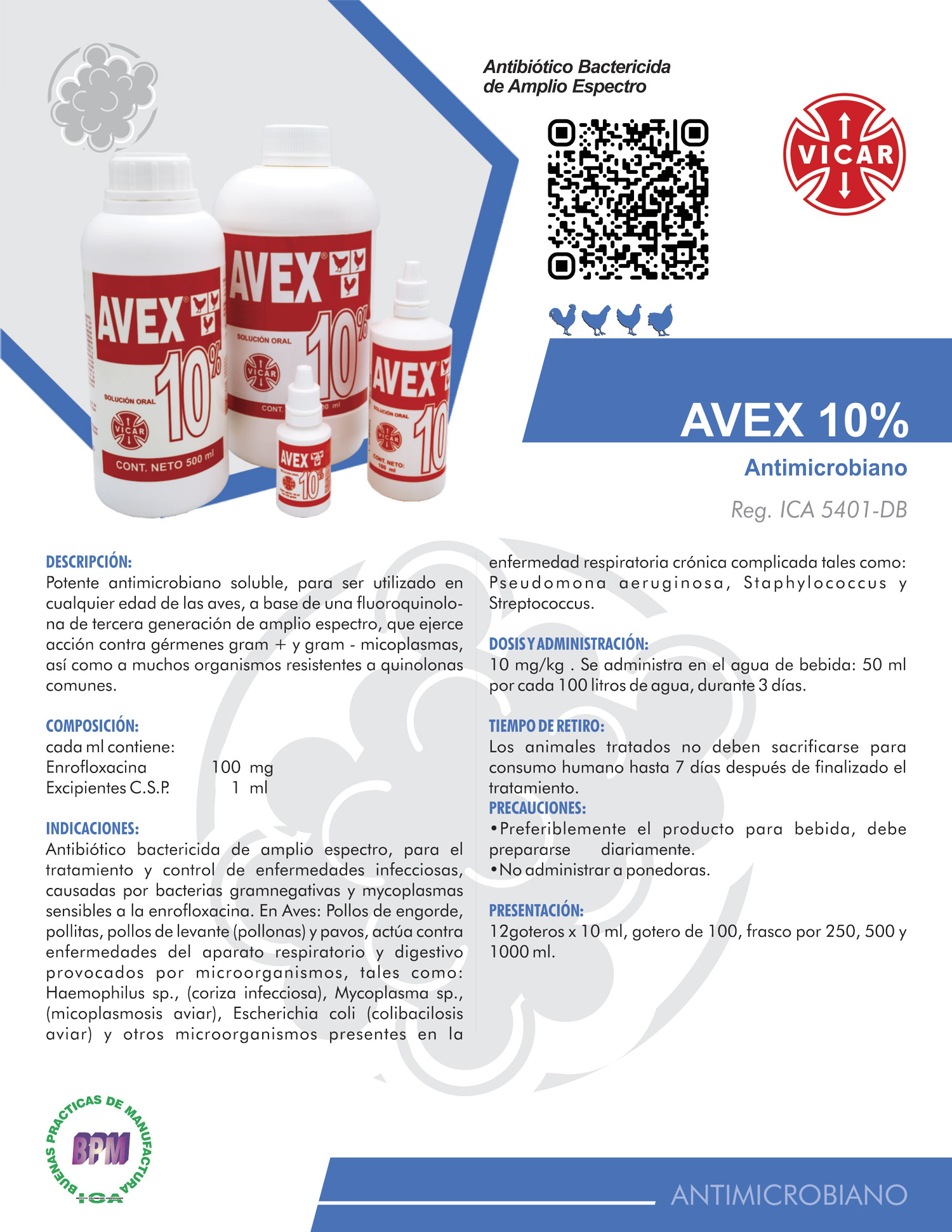 • AVEX 10% Tratamiento y control de enfermedades infecciosas Antibiótico bactericida