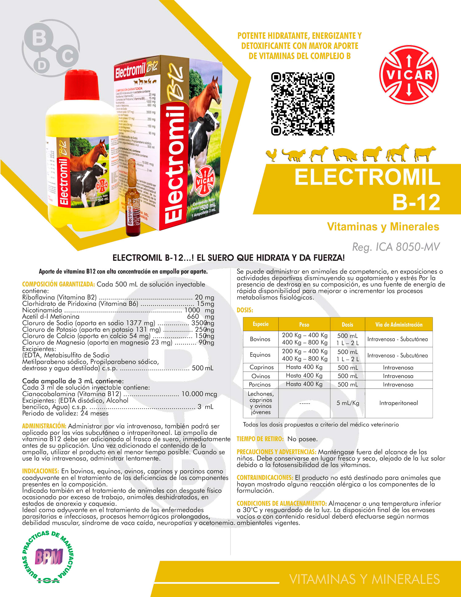 Ideal como adyuvante en el tratamiento de las enfermedades parasitarias e infecciosas, procesos hemorrágicos prolongados, debilidad muscular, síndrome de vaca caída, neuropatías y acetonemia.