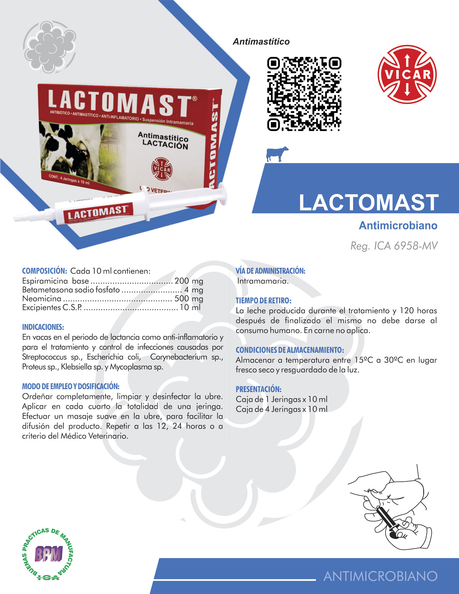 En vacas en el periodo de lactancia como anti-inflamatorio y para el tratamiento y control de infecciones causadas por Streptococcus sp., Escherichia coli, Corynebacterium sp., Proteus sp., Klebsiella sp. y Mycoplasma sp.