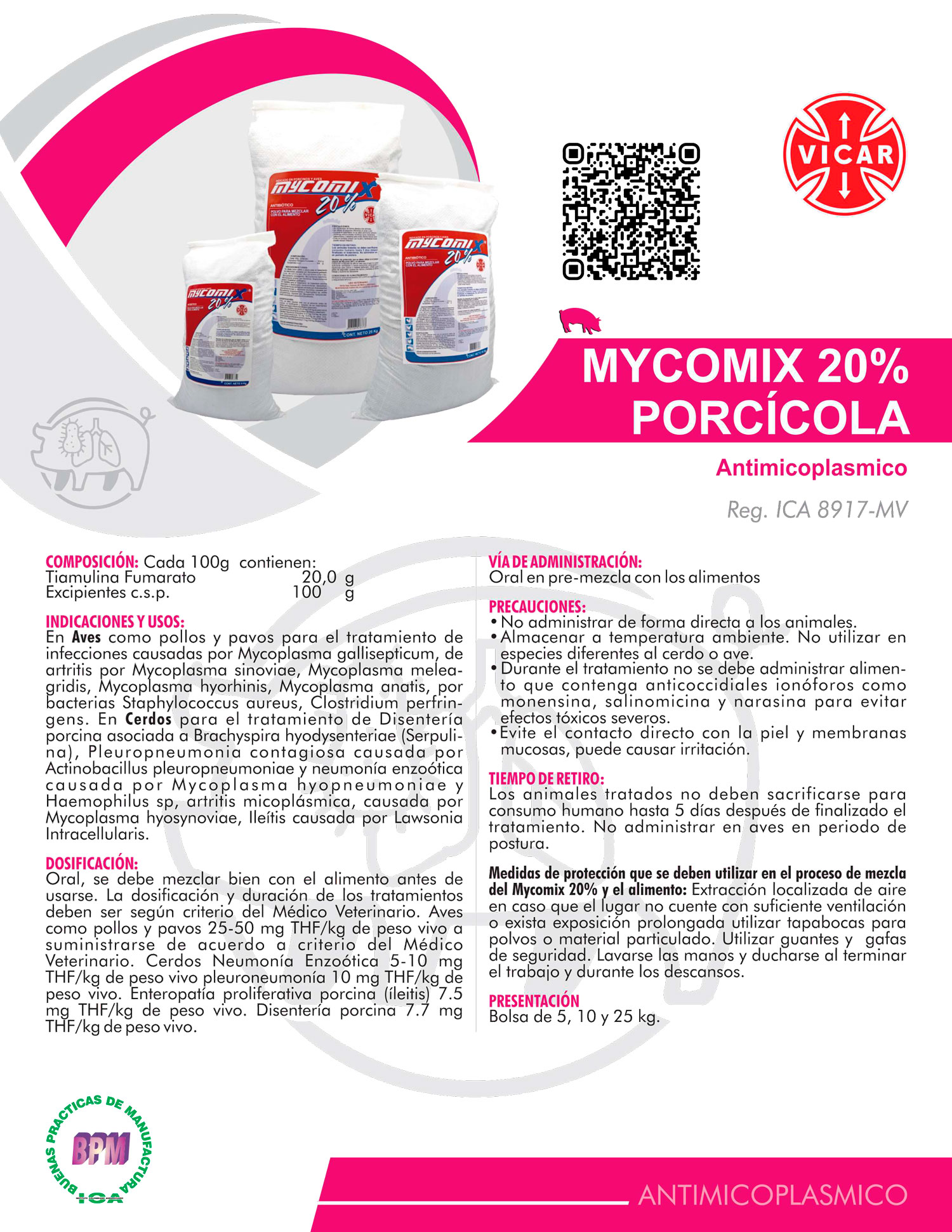 • Almacenar a temperatura ambiente. No utilizar en especies diferentes al cerdo o ave.