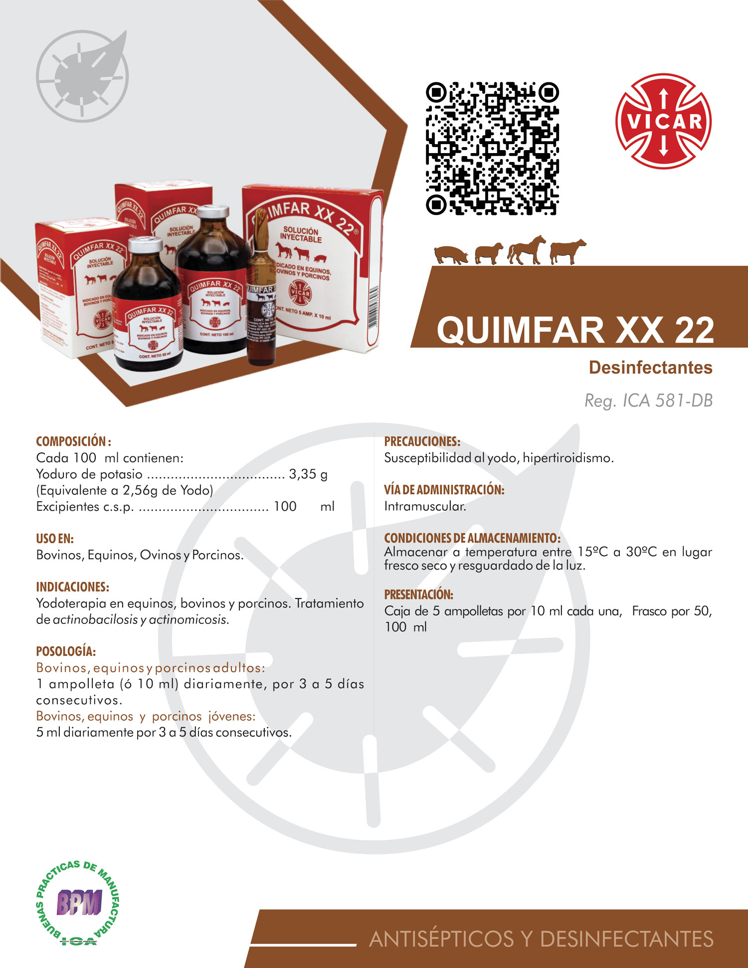 Yodoterapia en equinos, bovinos y porcinos. Tratamiento de actinobacilosis y actinomicosis.